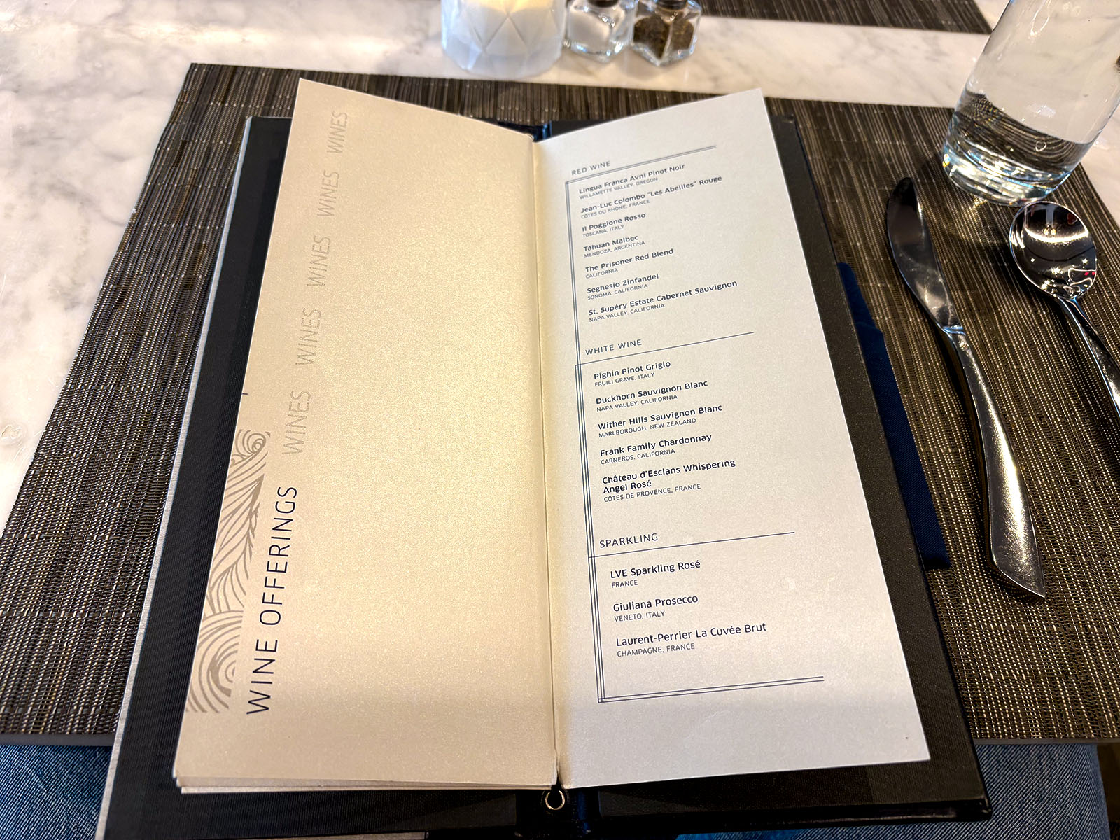 Das kulinarische Angebot der United Polaris Lounge San Francisco überzeugt durch Vielfalt und Qualität und lässt tatsächlich kaum Wünsche offen. Verglichen mit einer gewöhnlichen United Club Lounge ist das Angebot hier um Welten hochwertiger und umfangreicher. Wer weniger Zeit mitbringt, kann sich schnell am Buffet bedienen und tatsächlich hervorragend essen. Es kann allerdings mit dem À-la-carte-Restaurant The Dining Room nur besser werden. Hier erwartet euch eine übersichtliche, aber feine Speisekarte, die je nach Tageszeit Frühstücksgerichte oder Vorspeisen, Hauptgerichte und Desserts bereithält. Bestellt wird ganz klassisch am Tisch. Die Getränkeauswahl entspricht dabei im Wesentlichen dem großzügigen Angebot der Bar. Auf der Speisekarte zur Auswahl standen im Juni 2025: