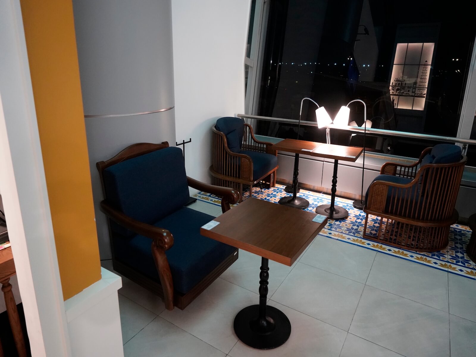 Das Design der Lounge hat mir bereits von oben gut gefallen. Es vermittelte den Eindruck, dass man sich in Vietnam befindet. Die altmodischen braunen Möbel passten gut zu der Verzierung an den Wänden. Die künstlichen Fenster mit Blick auf einen Tempel, Kirche oder andere Sehenswürdigkeit passten gut zu den Straßenlampen an den Wänden. Dass Vietnam einmal eine französische Kolonie war, merkt man am Design der Arbeitsplätze und des Buffett-Bereiches. Hier wird versucht das Ambiente einer französischen Seitenstraße mit kleinen Geschäften zu vermitteln und es ist meiner Ansicht nach gut gelungen.