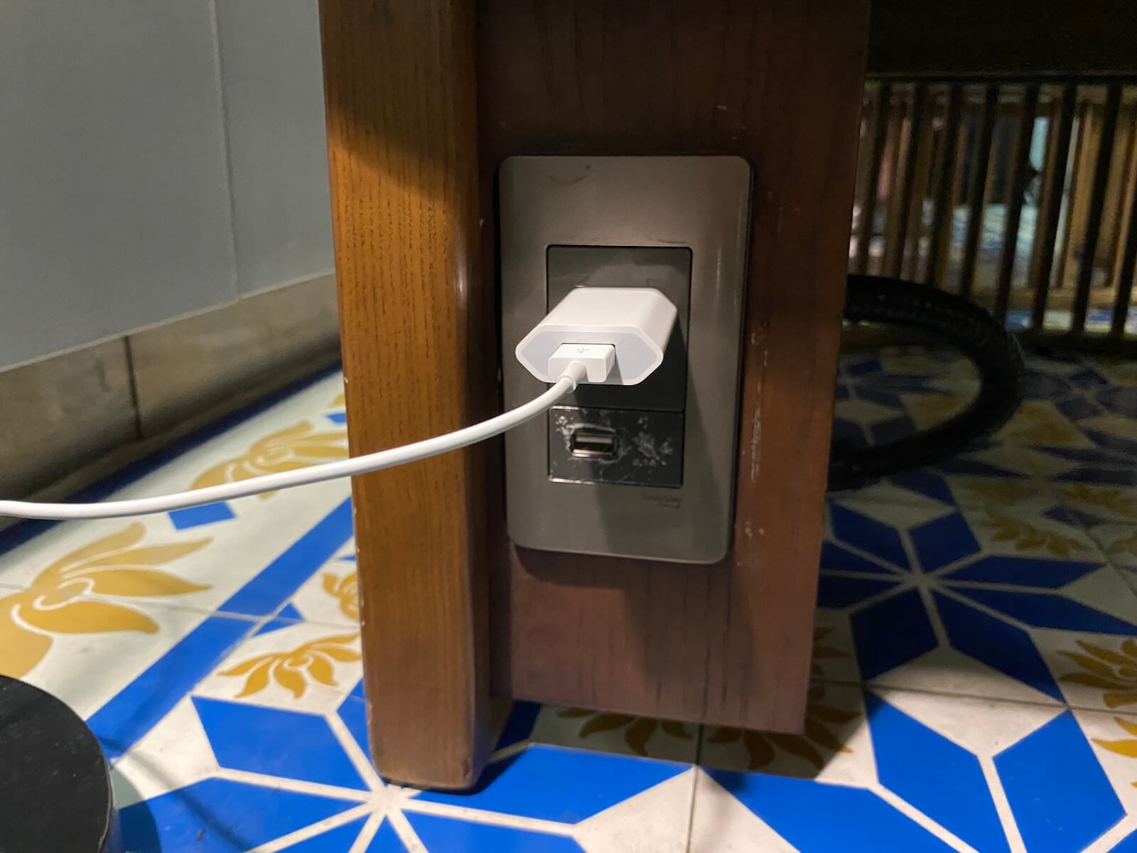 Steckdosen und USB-Anschlüsse gab es auch reichlich in der Lounge. So verfügt jeder Sessel unten über eine Steckdose und USB-Anschluss. Am Eingang lagen noch Zeitschriften für die Gäste aus. Zur Weihnachtszeit hatte man noch einen Weihnachtsbaum in der Lounge aufgestellt, was bei ca. 26 Grad draußen ein bisschen Weihnachtsstimmung verbreiten sollte. Da wir am Abend in der Lounge waren, konnte man von dem Vorfeld des Flughafens wenig sehen, aber ich denke tagsüber bietet die Lounge ein super Blick auf die Start- und Landebahn. Durch die große Fensterfront fällt tagsüber genügend Licht in die Lounge.