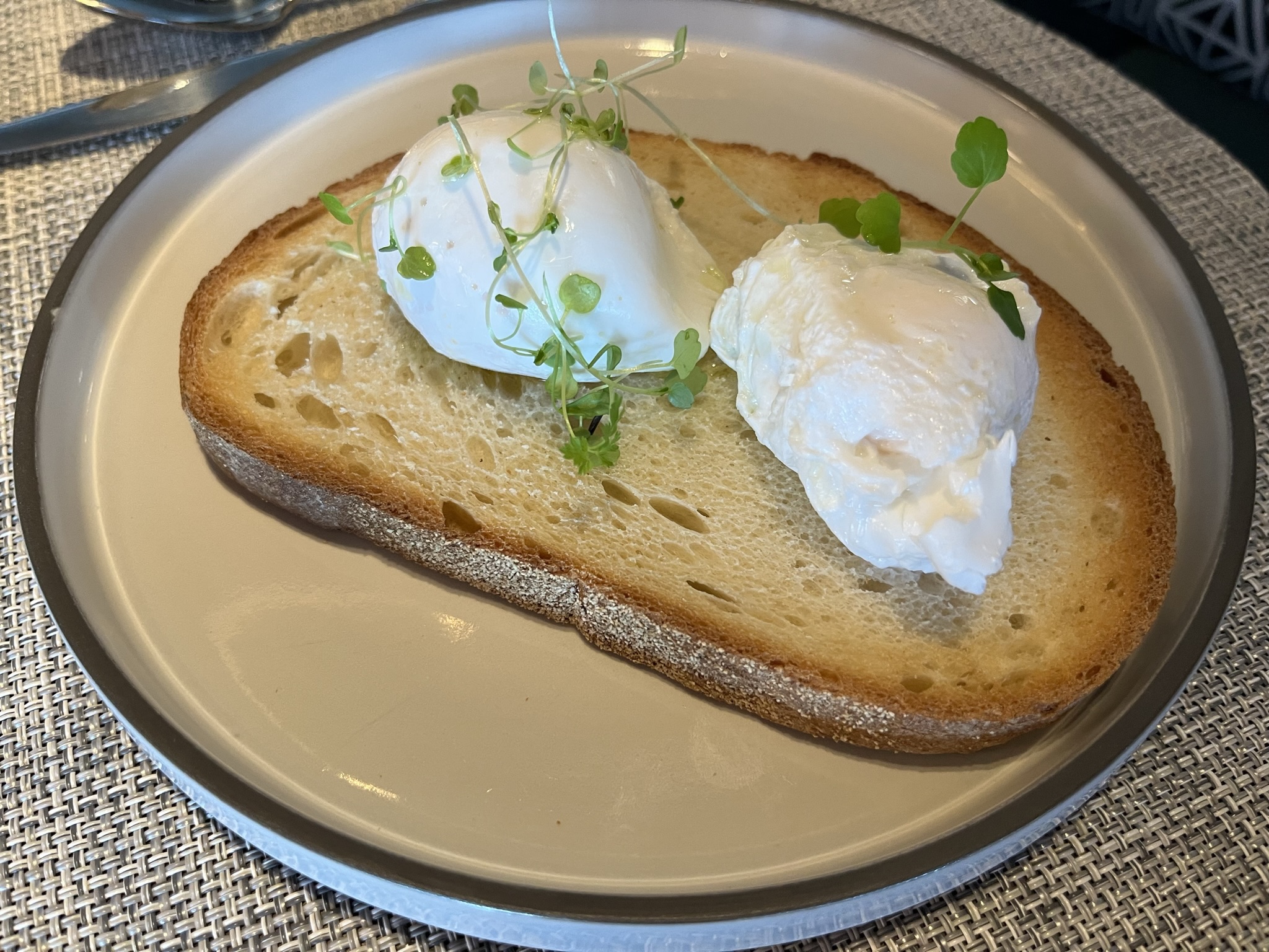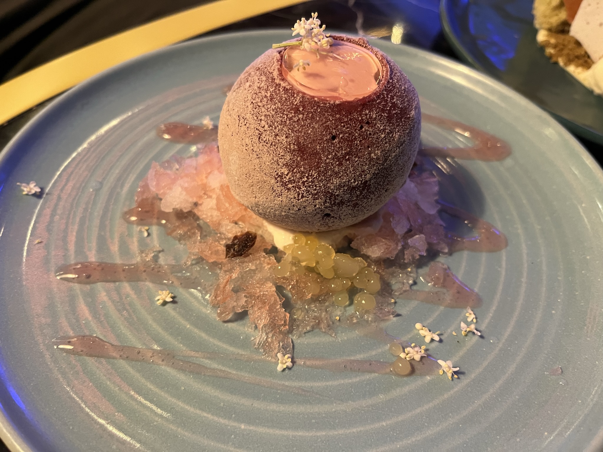 - Spencer Island Spanner Crab, Merna’s Crumpet, Cultured Cream, Chive, Pickled Red Onion 33 AUD