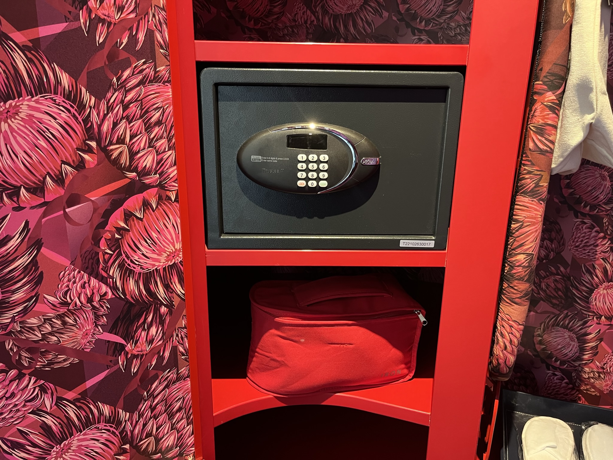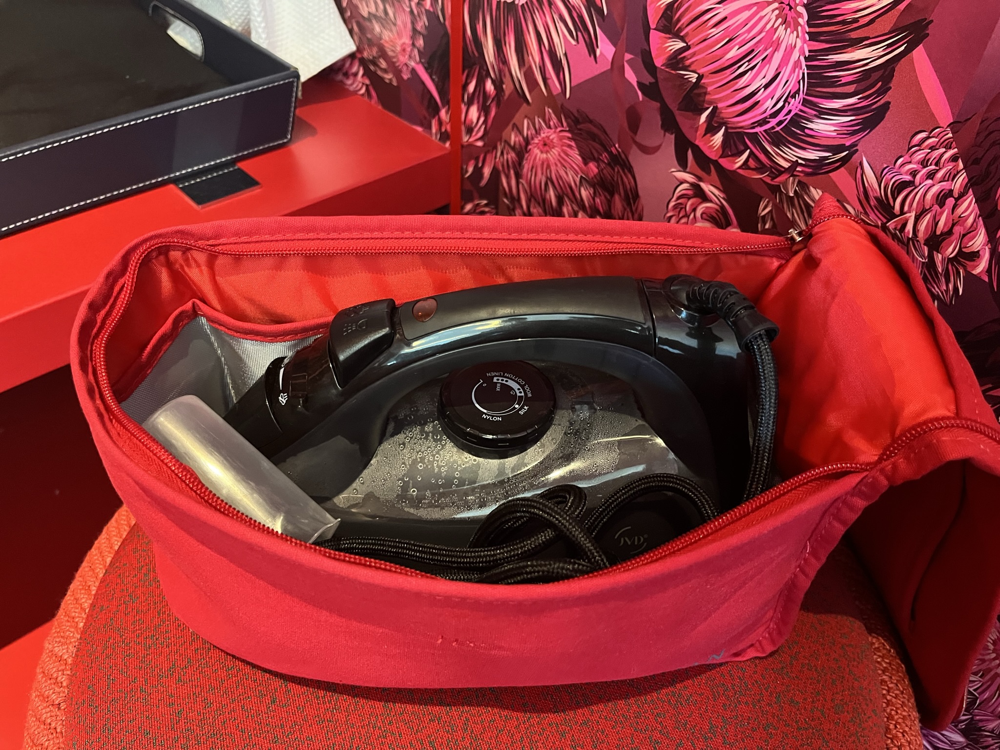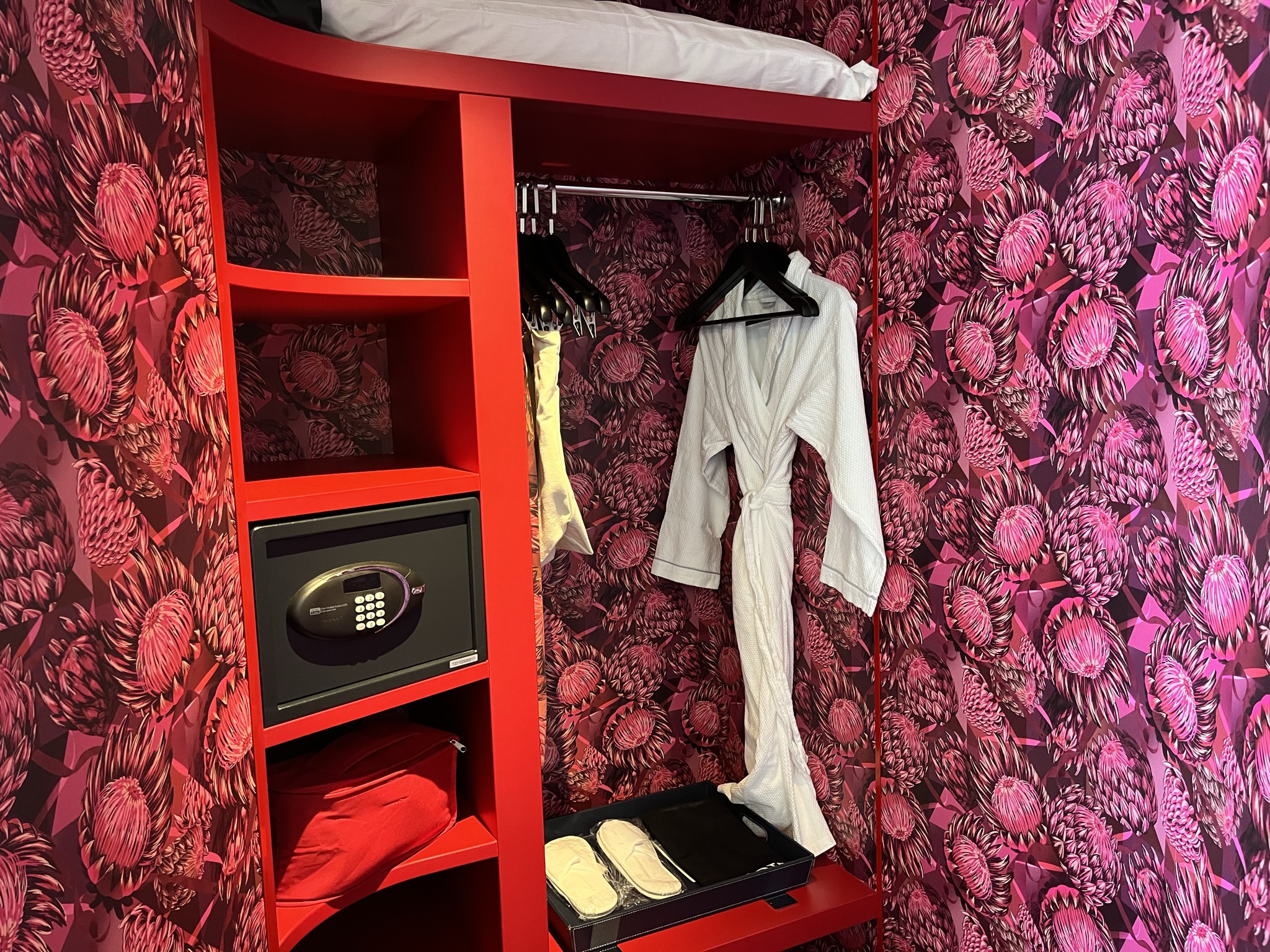 Die vom Schlafbereich abgetrennte Ankleide verfügte über eine Garderobe, Regal, Hocker und Kofferablage. Weiterhin waren hier der Safe, ein Bügeleisen und Taschenlampe zu finden.