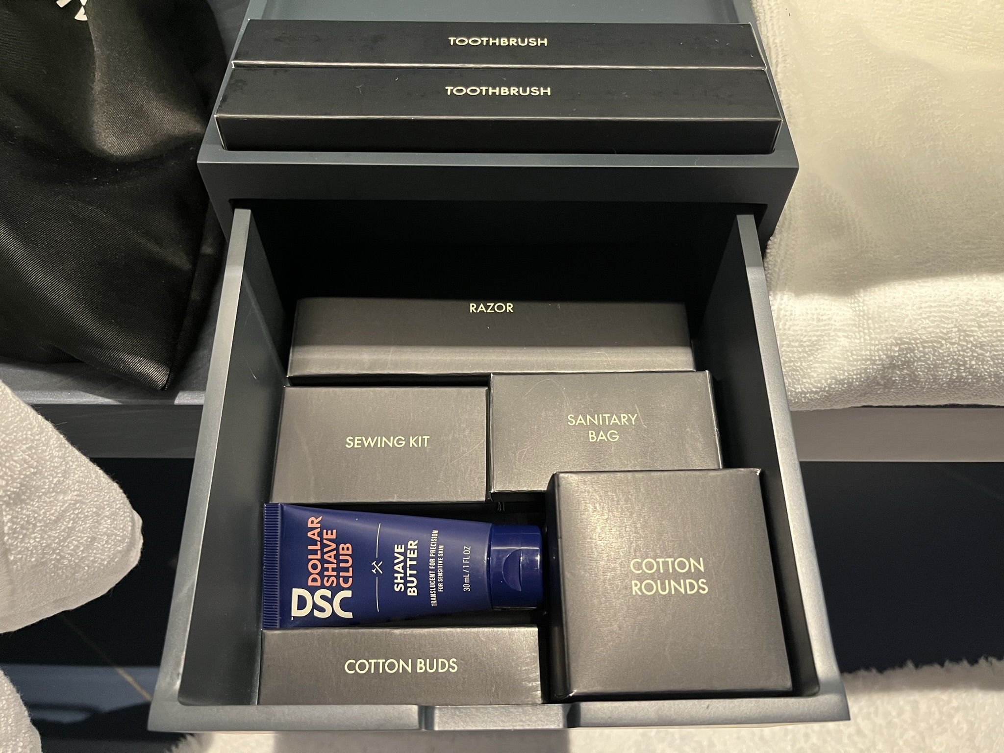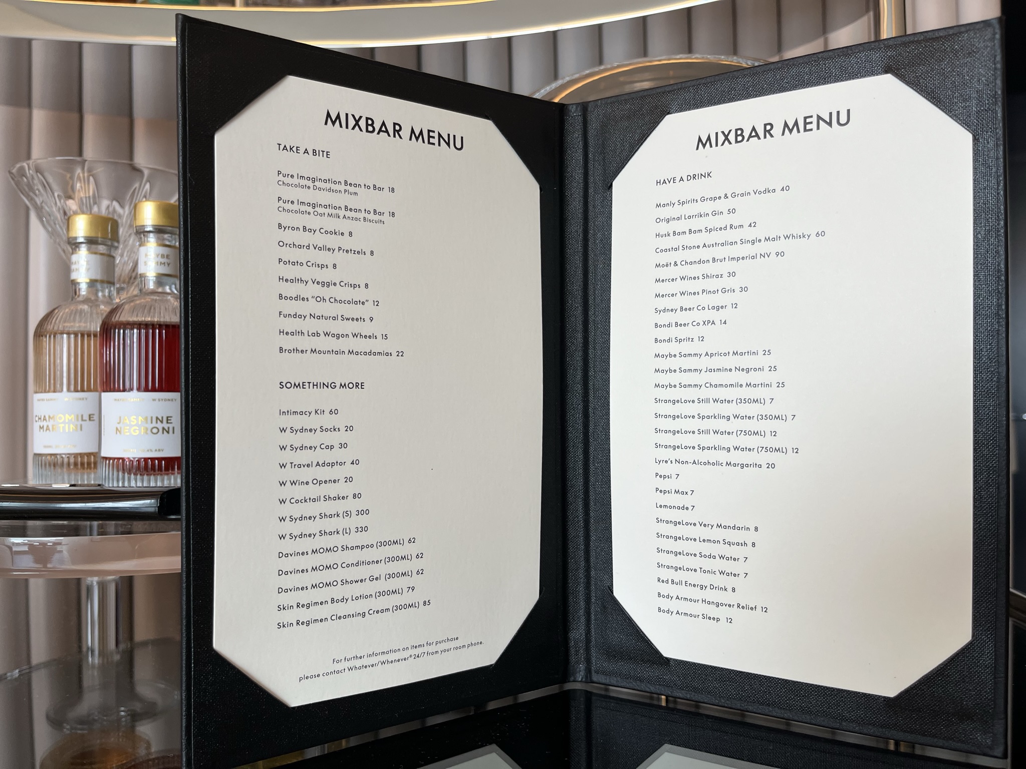 Ein besonderes Highlight des Zimmers war die aufwendig zusammengestellte Minibar bzw. “Mixbar”. Neben den üblichen Softdrinks gab es zahlreiche Drinks zum Mixen. Außerdem konnten Snacks und ausgewählte Souvenirs erworben werden.