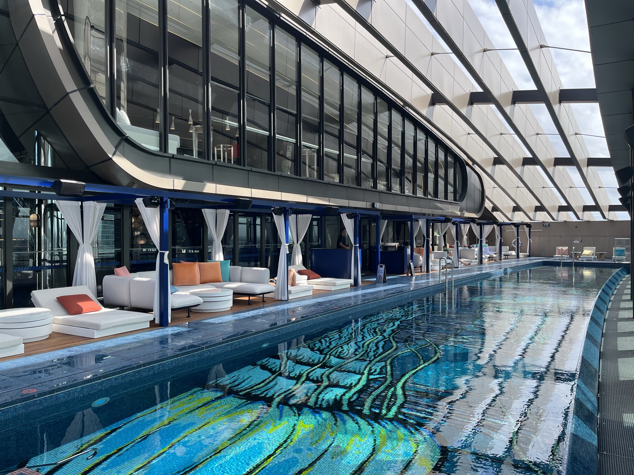 Darüber hinaus verfügt das W noch über einen Innenpool im 22. Stock. Auch hier kann man mit Ausblick schwimmen. Allerdings geht der Blick in Richtung Innenstadt statt Darling Harbour.
