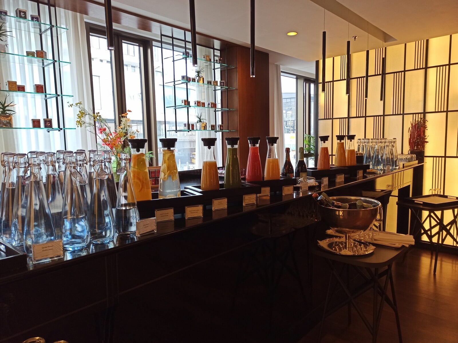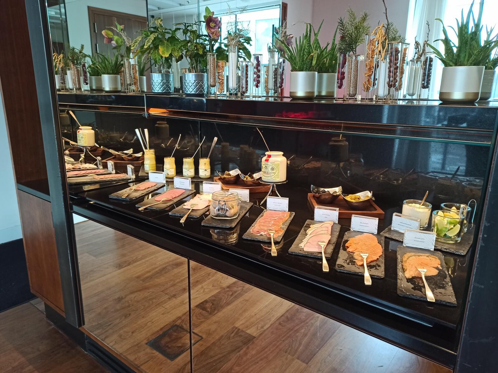 Direkt beim Betreten wird man nach der Zimmernummer gefragt und anschließend zu einem Tisch geführt. Am Tisch können Heißgetränke und verschiedene Gereich aus einer Karte bestellt werden. Die freundlichen Mitarbeiter geben gerne Tipps zu den verschiedenen Gerichten. Am ersten Morgen probierte ich die Eggs Benedict und am zweiten Morgen die Eggs Royale. Beides war sehr gut und auch am Buffet, das ich in einem kleinen Nebenraum befindet, wurde ich fündig. Neben den klassischen warmen Gerichten werden verschiedene Aufschnitt- und Käsesorten, Müsli, frisches Obst und der Strudel des Tages angeboten. Im Speisesaal selbst gibt es eine große Auswahl an kalten Getränken, wie Säfte, Infused Water, Sekt und sogar Weißbier (wenn ich es richtig gesehen habe).