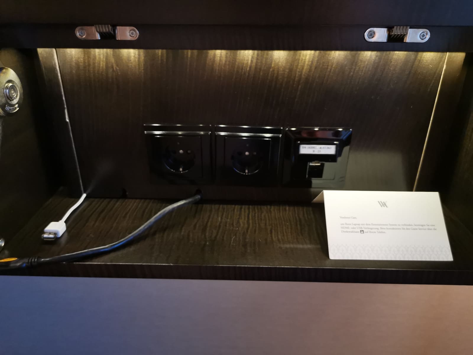 Zur Ausstattung der Junior Suite gehörte zudem ein 40-Zoll-LCD-Fernseher, Apple TV, ein Safe und eine sehr gut ausgestattete Minibar (diese war nicht inklusive) mit Nespresso Kaffeemaschine. Die Klimaanlage wurde über ein Touchpad bedient. Die Beleuchtung im gesamten Zimmer konnte über einzelne Knöpfe oder über einen Masterschalter neben der Eingangstür bedient werden. Steckdosen waren ausreichend verfügbar.