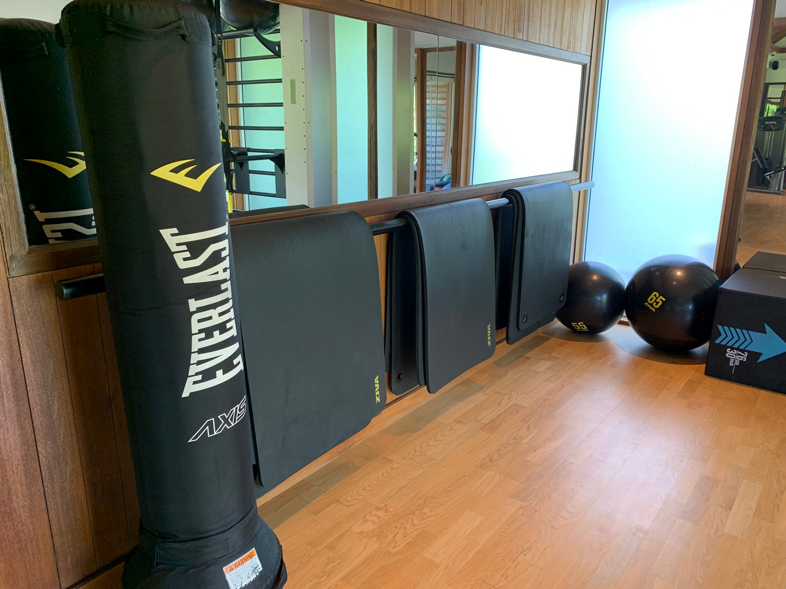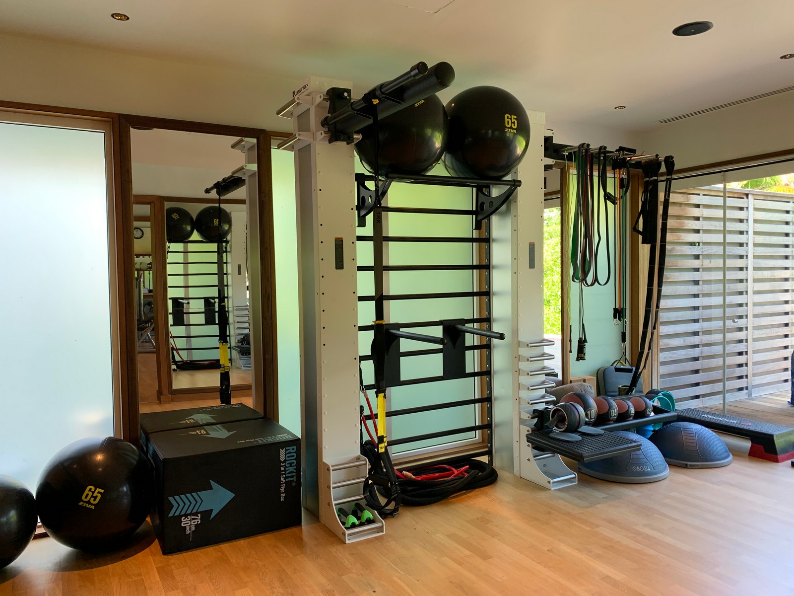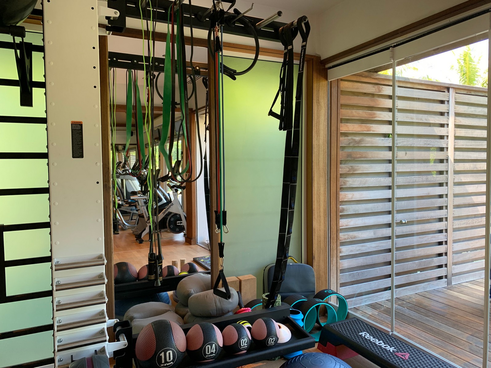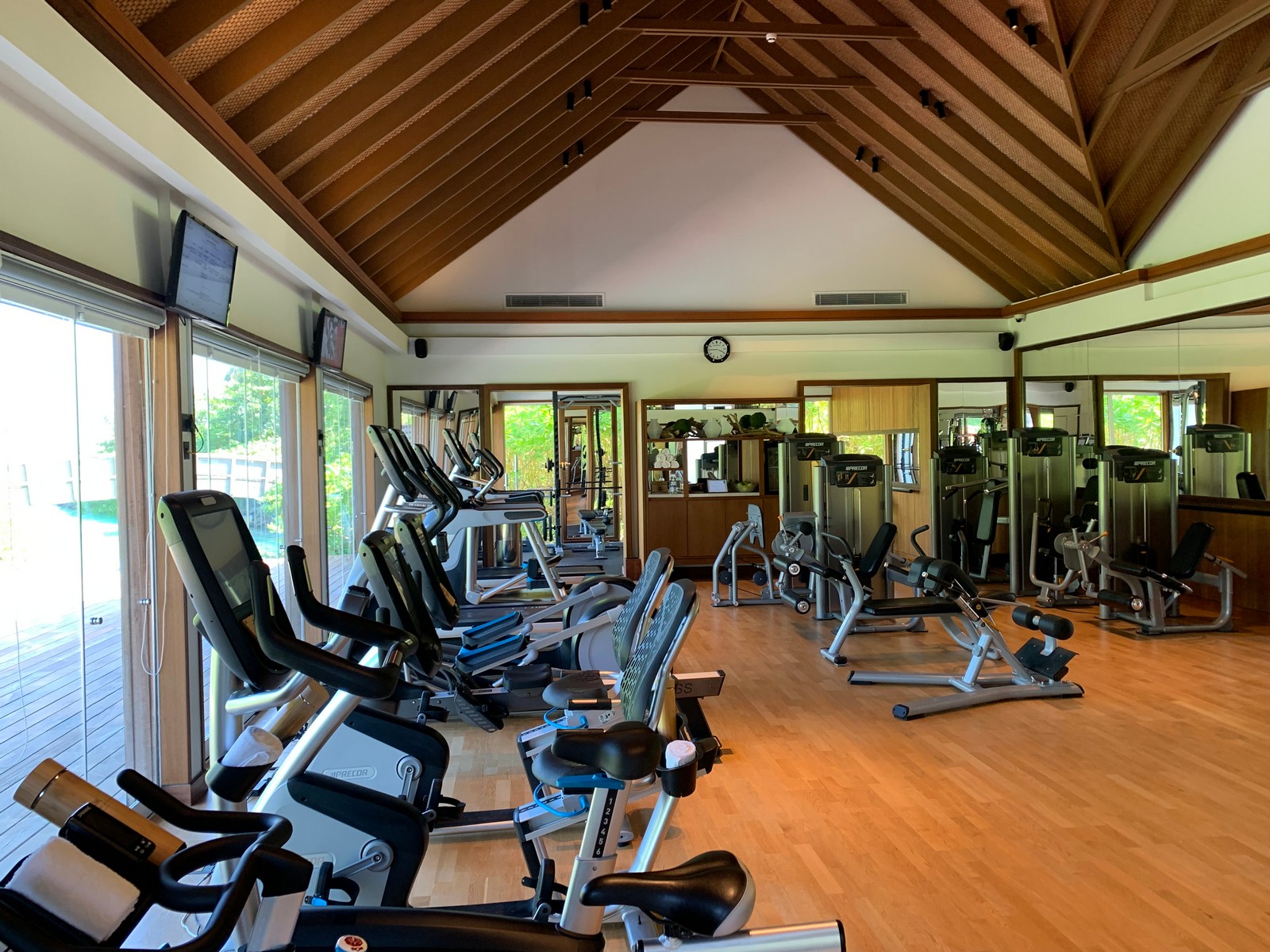 Das Waldorf Astoria Maldives Ithaafushi verfügt über ein gut ausgestattetes Fitness-Studio, welches rund um die Uhr geöffnet ist. Im zentralen Bereich des Hotels an einem Kanal gelegen bietet es einen Blick auf Palmen und Wasser. Neben einigen Laufbändern und diversen Cardio-Geräten standen zahlreiche Precor Geräte, Bälle, Bänder und Hanteln bereit. Das Fitnessstudio verfügt über mehrere Personal Trainer, von denen während unserer Besuche mindestens immer zwei anwesend waren. Neben der Möglichkeit private Sessions mit einem Trainer zu buchen, gibt es die Möglichkeit am Nachmittag ein Gruppen-Workout mitzumachen. Wir haben die Chance mehrmals genutzt und waren maximal zu dritt und haben so indirekt eine private Stunde erhalten. Doch auch ohne Privatsession ist man im Fitnessstudio gut aufgehoben. So wird Gästen eine wiederauffüllbare Wasserflasche gereicht. Sehr angenehm war auch das kalte Tuch nach dem Training. Da könnte sich mein Fitnessstudio gerne eine Scheibe von abschneiden…