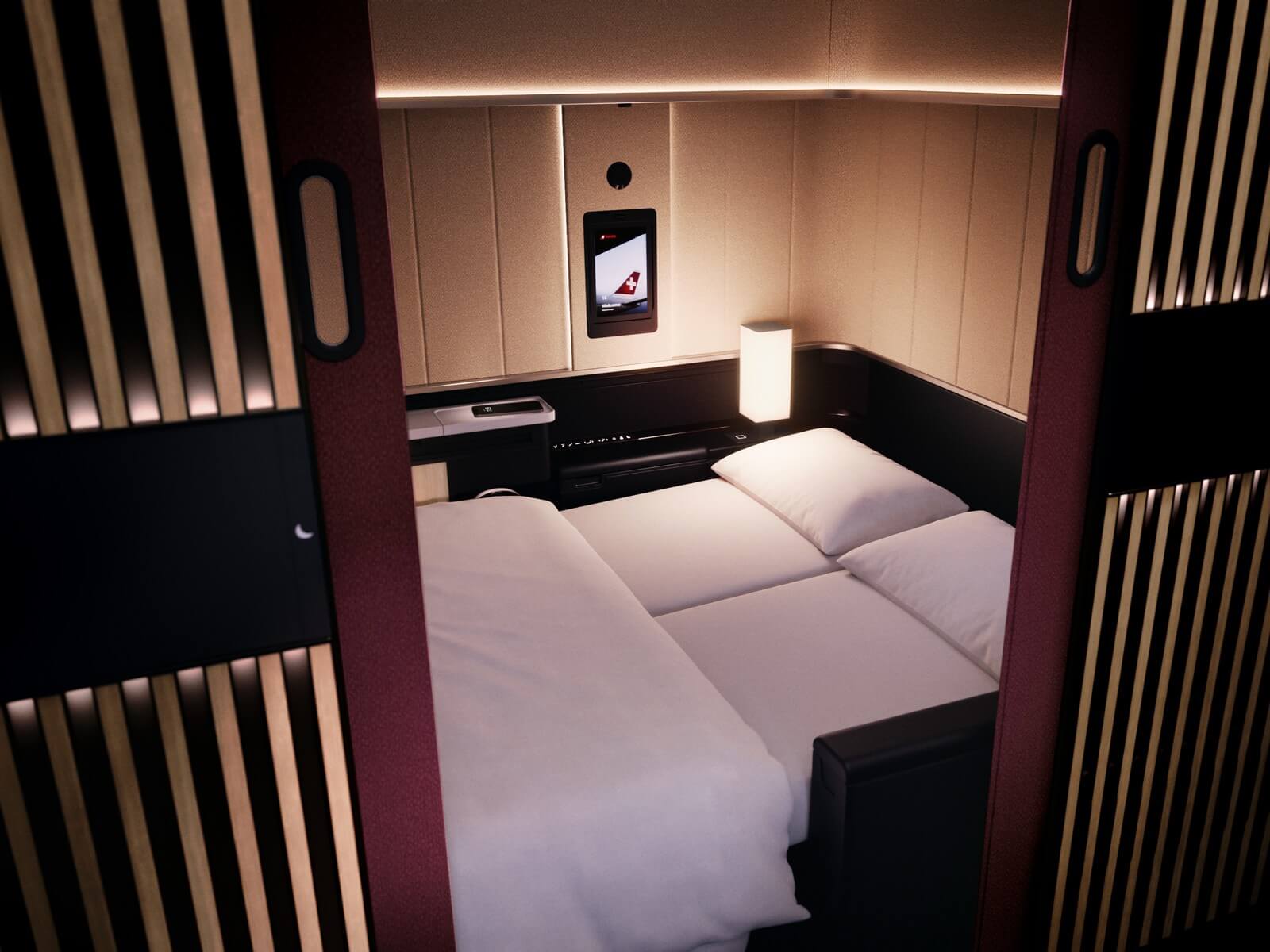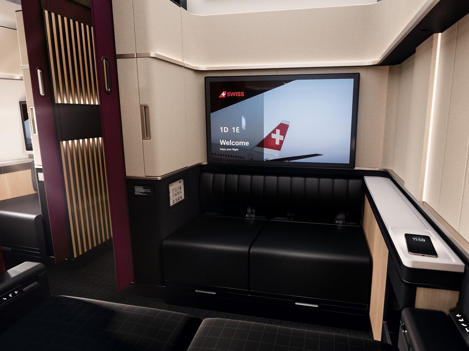 Konkret kombiniert die SWISS First Grand Suite die Single-Suite (Sitz 1A) mit der mittigen Suite Plus (Sitze 1D/E) über einen privaten Durchgang. Entstehen soll damit ein Bereich, der sich individuell anpassen lässt – bis hin zu einer Einrichtung für bis zu drei Reisende. Paare, Familien oder Geschäftsreisende können die Grand Suite multifunktional nutzen und sich dabei wie in einem exklusiven Apartment fühlen. Laut SWISS sei das Ziel, Reisenden “das Gefühl zu geben, über den Wolken ein eigenes Loft zu haben”.