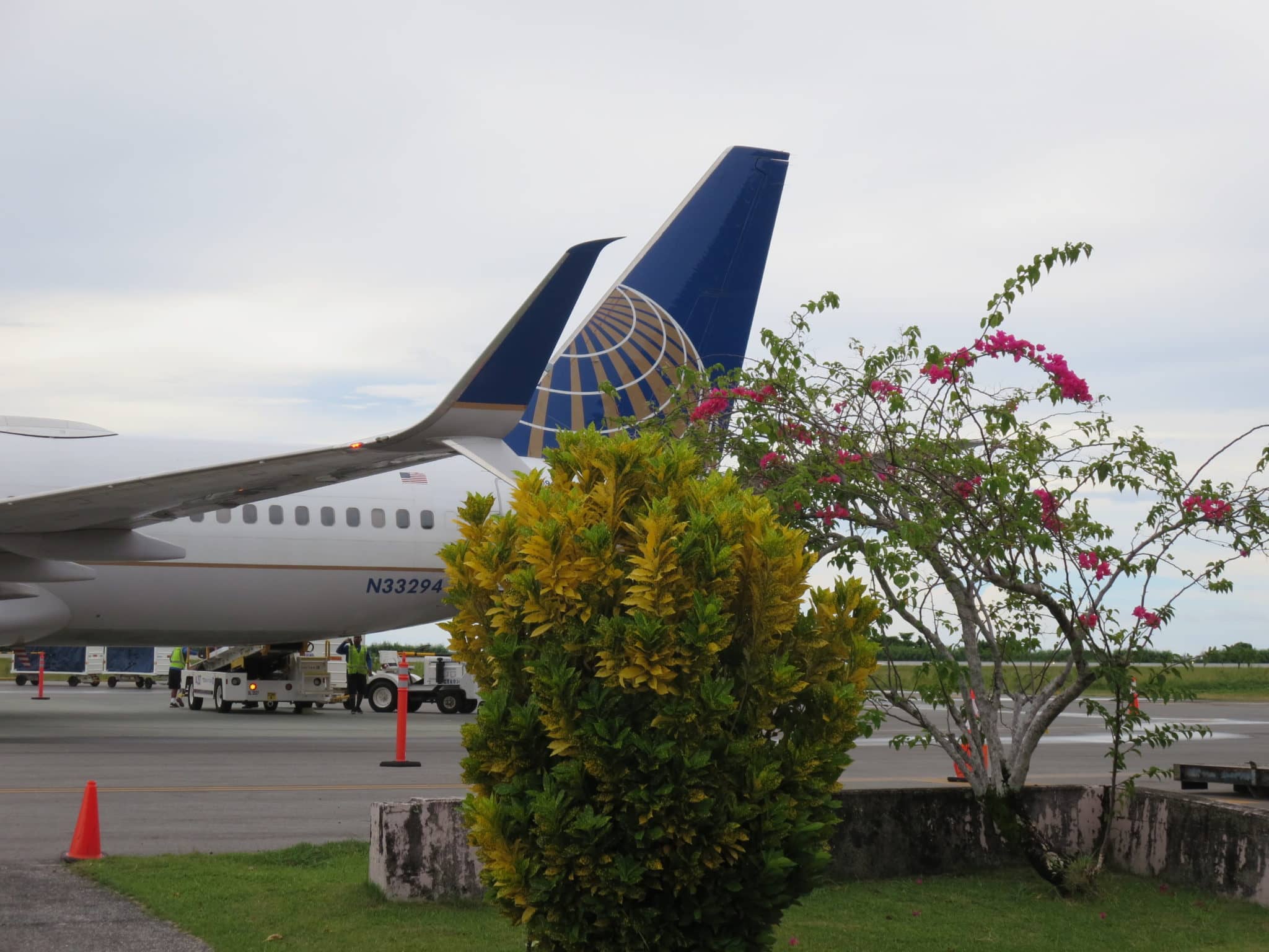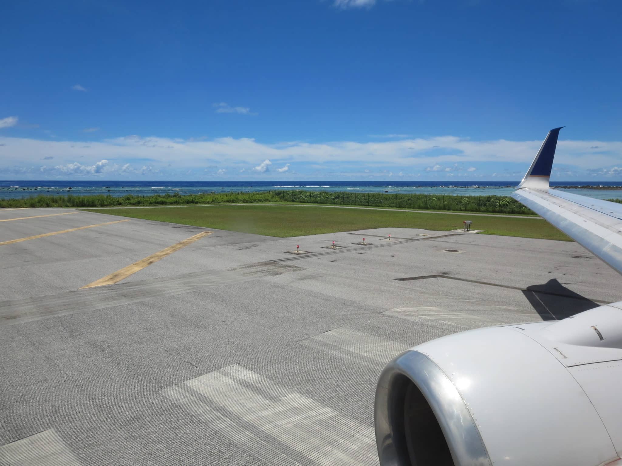 Aufgrund der kurzen Landebahn bremsen die Piloten nach der Landung sehr stark ab, was die Bremsen der Boeing stark beansprucht. Als Vorsichtsmaßnahme steht daher an allen Flughäfen, die vom Island Hopper bedient werden, die Feuerwehr bereit – so auch in Majuro. Mit Ausnahme eines Flugzeugs der Royal Canadian Air Force und einem Privatjet war unsere United Boeing das einzige Flugzeug am Flughafen.