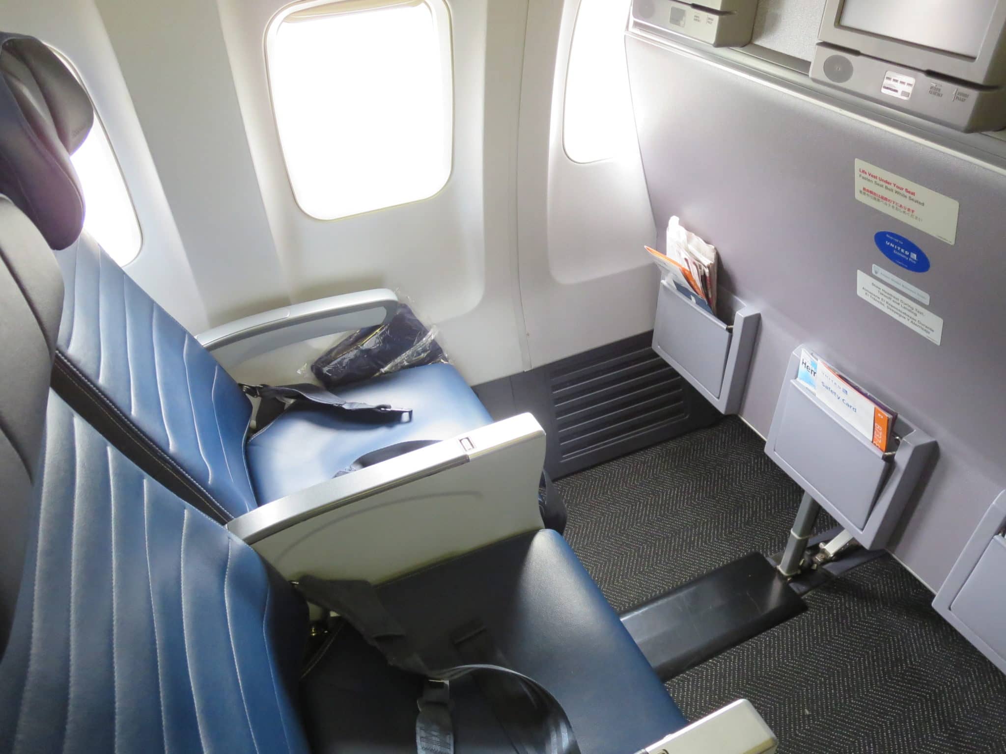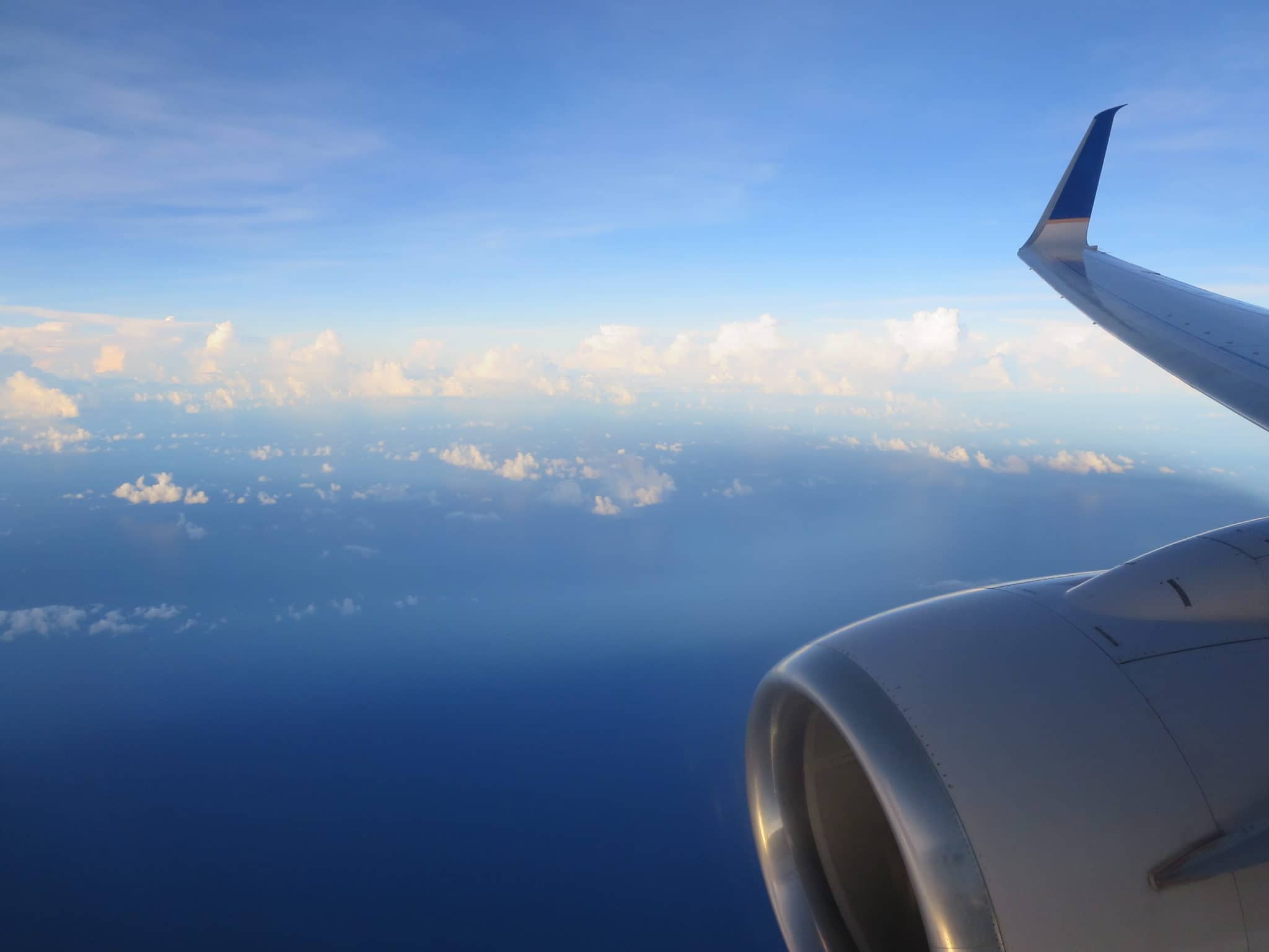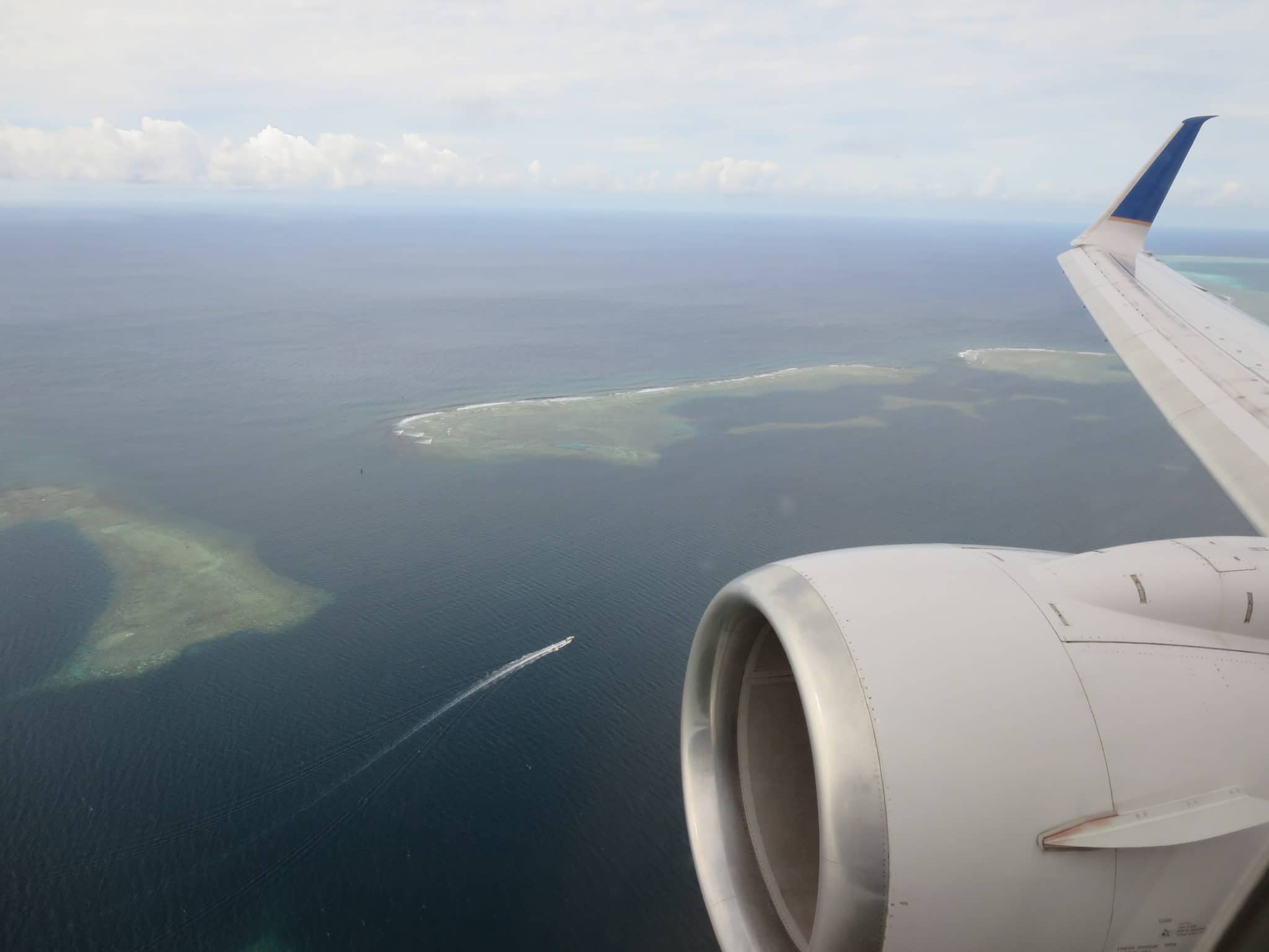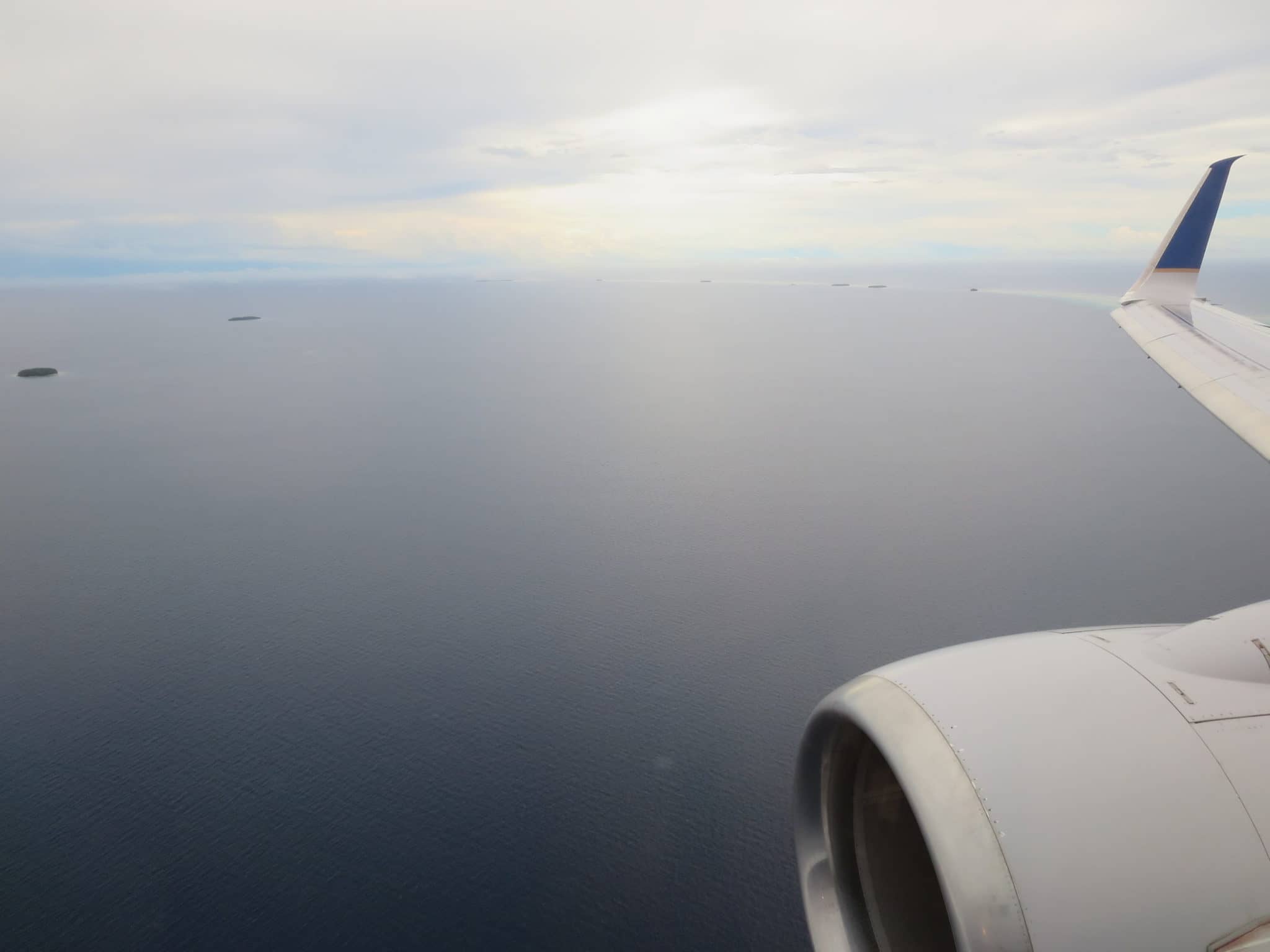 United nutzt eine bzw. mehrere Boeing 737-800 für den Island Hopper. Diese verfügt über 16 First Class Sitze in 4 Reihen und einen Economy Plus Bereich mit 3 – 3 Konfiguration in den sich anschließenden 5 Reihen. Die erste dieser Economy Plus Reihen, welche eine Bulkhead Reihe ist, gilt allgemein als die beste Sitzreihe für diejenigen, die den Flug aufgrund des Ausblicks buchen. Eine weitere Besonderheit ist Platz 7C welcher für den Mechaniker an Bord freigehalten wird. Dieser begleitet den Island Hopper ab dem ersten Stopp in Majuro bis nach Guam und führt die Augaben durch, die normalerweise vom Bodenpersonal am Flughafen übernommen werden. Eigentlich genau so gut ist aber Reihe 8, welche sich kurz vor dem Flügel befindet und einen tollen Blick nach unten und gleichzeitig auf das Triebwerk ermöglicht. Hier saßen auch wir, da Reihe 7 zum Zeitpunkt der Buchung bereits belegt war. Wer eine wirklich gute Sicht haben möchte, sollte also diesen beiden Reihen bevorzugen.